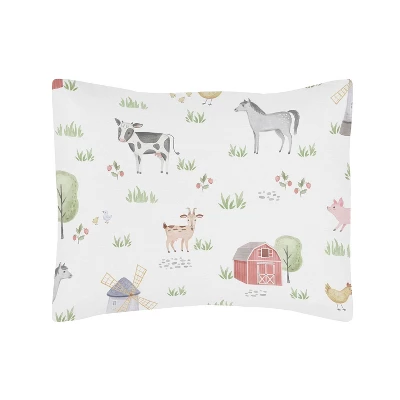 “The 5pc On The Farm toddler bedding collection by Sweet Jojo Designs will create a charming barnyard scene for your child’s room. This whimsical gender neutral bedding set uses a sensational collection of exclusive brushed microfiber fabrics. It boasts a hand painted watercolor farmhouse print complete with pigs, horses, goats, geese, chickens and sheep, a coordinating lattice print and solid fabrics. The neutral but bold color palette of reds, blues, yellows and greens with gray accents will set your bedroom up in high style. This Sweet Jojo Designs set will fit all standard toddler beds and is machine washable for easy care and repeated use.