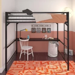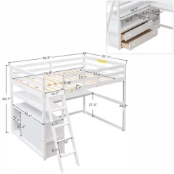 Full Size Loft Bed With Desk, Shelf And Two Built-in Drawers – ModernLuxe