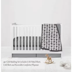 Bacati – Elephant White And Gray 100 Percent Cotton Universal Baby Crib Or Toddler Bed Fitted Sheet