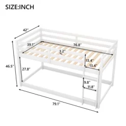 Twin Over Twin Floor Bunk Bed With Ladder And Safety Guardrail-ModernLuxe
