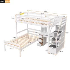 Twin Size Loft Bed With Separate Bed, Staircase For Storage, Desk, Shelves And Drawers – ModernLuxe