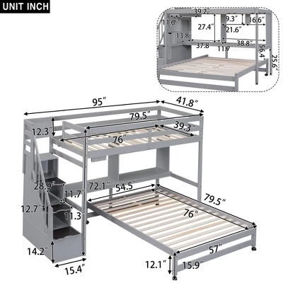 - 【Multifunctional Design】The multifunctional design of this bed allows you to save yourself from buying too much furniture. Built-in desks and bookshelves provide you with space for office and study. Stair storage is designed to keep your belongings organized. At the same time, it is also equipped with a hanger, which can be used to hang clothes.